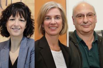 Pictured, from left to right: Emmanuelle Charpentier, Jennifer Doudna y Francisco Martínez Mojica.